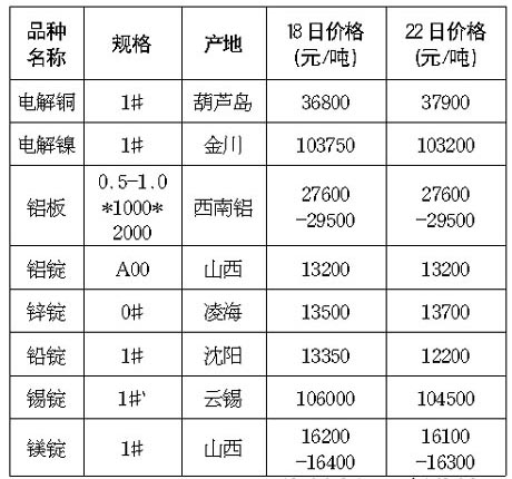 北京有色金屬市場(chǎng)一周行情[5月18日-22日]