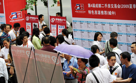 5月29日,眾多市民在看二手房信息。 當(dāng)日,第4屆成都二手房交易會(huì)(2009年夏季)在成都市二手房交易市場拉開帷幕。參展的20家成都品牌中介精選2萬余條二手房房源信息,為購房者提供購房選擇。