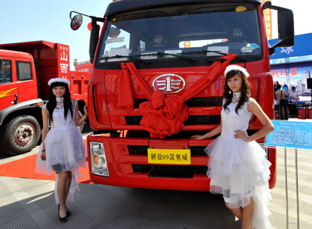 6月2日,模特在展示卡車。當日,首屆中國(太原)國際卡車展在山西省展覽館開展,來自國內(nèi)外卡車行業(yè)的20余家領軍企業(yè)參展,吸引了眾多的客商和參觀者。展會上,我國卡車工業(yè)發(fā)展的新技術、新設備以及在新能源利用和節(jié)能環(huán)保方面的成就得到充分展示。