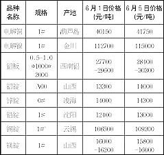 北京有色金屬市場一周行情[6月1日-6月5日]