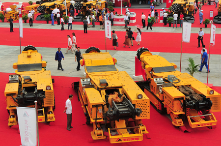 6月18日,寧夏能源及電力產業(yè)博覽會在銀川國際會展中心開幕,來自國內外的360多家裝備制造企業(yè)參展。這是展會上展出的大型采掘設備。