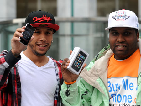 日前,位于紐約曼哈頓第五大道的蘋果旗艦店提早開門迎客,開售最新款的iPhone3GS,數(shù)百名連夜排隊(duì)等待的iPhone迷如愿以償買到自己心儀已久的iPhone3GS。