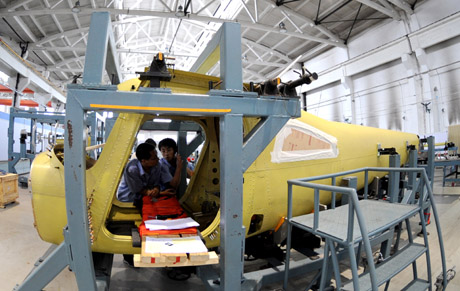 這是7月13日拍攝的組裝中的L162活塞式輕型運動飛機。 中航工業(yè)沈陽飛機工業(yè)(集團)有限公司(簡稱沈飛公司)和美國賽斯納飛機公司合作生產(chǎn)的L162活塞式輕型運動飛機將于年內(nèi)在沈陽實現(xiàn)首飛。據(jù)該公司介紹,目前項目正處于飛機大部件組裝階段。 這款L162輕型運動飛機主要用于飛行培訓(xùn)、私人娛樂飛行。美方承擔該飛機的設(shè)計,沈飛公司負責飛機零組件制造、裝配和試飛。