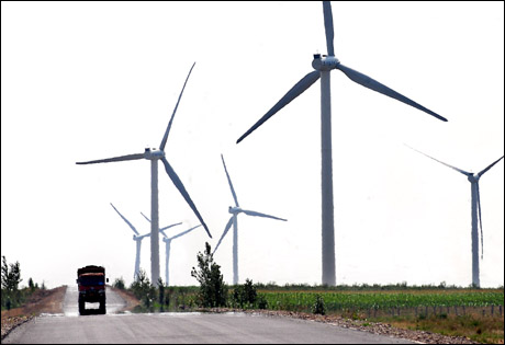 在內(nèi)蒙古自治區(qū)興安盟的境內(nèi),時常能夠看到公路兩旁矗立著一座座高大的風力發(fā)電機。據(jù)統(tǒng)計,截至5月底,內(nèi)蒙古自治區(qū)風電并網(wǎng)已達315.28萬千瓦,居全國第一。近年來,風電開發(fā)不僅帶動了當?shù)氐南嚓P(guān)產(chǎn)業(yè),因風電工程建設(shè)鋪設(shè)的公路,使當?shù)氐慕煌l件也得到了很大改善,“風車動,道路通”,成了草原新景觀。 |