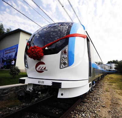 我國自主研發(fā)的深圳地鐵新款不銹鋼列車在長春下線。