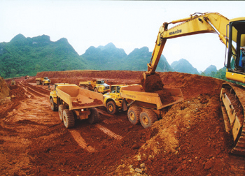 “百色鋁土礦遠(yuǎn)景儲(chǔ)量超過10億噸,占全國總儲(chǔ)量的1/4以上,其中平果縣境內(nèi)探明儲(chǔ)量約2億噸!敝袊X業(yè)廣西分公司總經(jīng)理瞿向東說,但平果鋁土礦屬巖溶堆積型鋁土礦,其特點(diǎn)是礦土共生、露天堆積、礦層薄,由此產(chǎn)生了采礦用地面積大、采礦作業(yè)面廣、占地速度快的問題。平果氧化鋁一、二、三期工程年平均用地分別為450、900、1200畝,最終整個(gè)礦山采礦需要用地近10萬畝,是國內(nèi)同等規(guī)模露采鋁土礦年用地量的3至4倍。