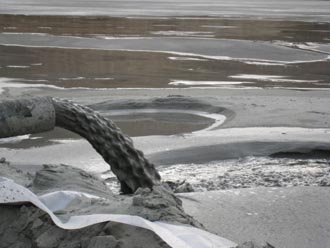 踏著荒草萋萋的山路,記者登上40多米高的尖山北尾礦庫大壩,此時(shí)巨大的庫區(qū)已不見有尾礦注入,但尾礦漿沉淀后形成的沼澤仍清晰可見。據(jù)張春華介紹,金祥鐵礦透水停產(chǎn)后,于2008年7月把北洺河鐵礦和玉石洼鐵礦起訴至邯鄲市中級法院。2009年3月下旬,這兩家國家鐵礦不敢再向尖山北尾礦庫排尾。 據(jù)了解,當(dāng)時(shí)兩家鐵礦并未停產(chǎn)。那么,其選礦場流出的尾礦排到哪里去了呢? 帶此疑問,記者沿尖山北尾礦庫大壩北邊的山路徒步東行,翻過一道土坡,眼前出現(xiàn)一個(gè)巨大的坑塘。一位開著翻斗車?yán)槭练降乃緳C(jī)師傅介紹說,這是玉石洼鐵礦正在建設(shè)的一個(gè)新尾礦庫。記者看到,庫區(qū)雖正處于建設(shè)之中,但一條管道已開始向坑塘里排放尾礦了。 北洺河鐵礦尾礦排到了什么地方?記者追蹤調(diào)查,在武安市上團(tuán)城鄉(xiāng)高村村北的北洺河道里找到了答案。在河道邊的河灘上,布滿一道道用尾礦渣堆積圍成的高高的堤壩,一條礦管道正在向壩里汩汩噴涌著灰白色的尾礦漿。 在北洺河鐵礦采訪時(shí),副礦長張金東以沒有得到邯邢局領(lǐng)導(dǎo)批準(zhǔn)為由拒絕回答記者提出的任何問題。該鐵礦負(fù)責(zé)外聯(lián)的工農(nóng)辦主任盧新說:“我們向北洺河排尾得到了高村允許,與高村簽定了排尾協(xié)議。記者應(yīng)該采訪高村村干部。”隨后,他打電話叫來高村主持工作的村黨支部副書記陳其林。 “北洺河鐵礦向河道排尾,是對高村的支持!标惼淞终f,“第一、按照協(xié)議約定,尾礦排在高村村北的河灘上,每立方米向村里支付1.6元的排放費(fèi);第二、村里辦起一個(gè)選硫廠,可以從尾礦里選出硫礦,這也是一筆不小的收入;第三、尾礦渣排在河灘上,蓋住了裸露的鵝卵石,可以植樹造林,綠化環(huán)境! 然而,記者深入到高村村民中間調(diào)查時(shí)卻聽到完全不同的聲音。許多村民表示:北洺河鐵礦向河灘上排尾,實(shí)際上是高村村干部為滿足個(gè)人的私利與國有礦山企業(yè)相勾結(jié)的結(jié)果,最終坑害的是老百姓的利益和國家利益。 一位姓王的村民告訴記者:“向河道非法排尾,一方面圈占了河灘上農(nóng)田;另一方面嚴(yán)重污染了環(huán)境,刮風(fēng)的時(shí)候,尾礦礦砂中的有害物質(zhì)隨風(fēng)飛揚(yáng),村里許多人得了皮膚。桓鼑(yán)重的是,堆積如山的尾礦還對河道行洪造成巨大安全隱患!