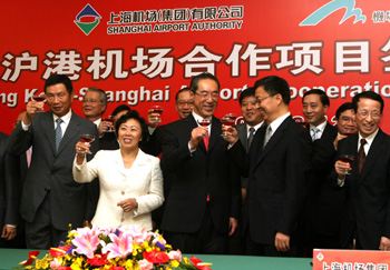 10月12日,上海機(jī)場(chǎng)(集團(tuán))有限公司與香港機(jī)場(chǎng)管理局在上海舉行滬港機(jī)場(chǎng)合作項(xiàng)目簽約儀式,雙方合資成立上海滬港機(jī)場(chǎng)管理有限公司,管理上海機(jī)場(chǎng)集團(tuán)所屬的虹橋機(jī)場(chǎng)的東、西兩個(gè)航站樓、虹橋綜合交通樞紐東交通中心與旅客流程相關(guān)區(qū)域,以及航站樓商業(yè)零售業(yè)務(wù)。