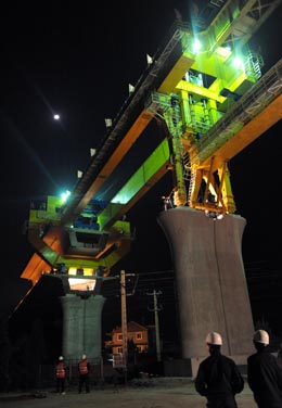 滬杭高鐵鋪架順利跨越運(yùn)行鐵路線,進(jìn)入無障礙施工階段。新華社記者