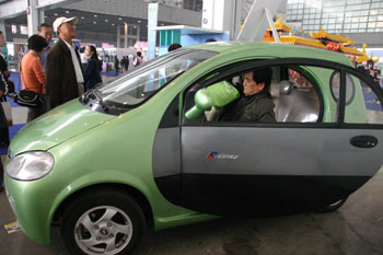 10月30日,在南京舉行的名特優(yōu)新產(chǎn)品展銷會(huì)上,觀眾在觀看現(xiàn)場(chǎng)展銷的一款最高時(shí)速70公里、可連續(xù)行駛120公里的電動(dòng)汽車。新華社發(fā)(董金林?jǐn)z) |