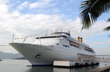 2009中國郵輪產(chǎn)業(yè)發(fā)展大會暨首屆國際郵輪博覽會11月在三亞舉辦。圖為?吭谌齺嗻P凰島國際郵輪碼頭的歌詩達“經(jīng)典號”郵輪。新華社記者 鄭瑋娜