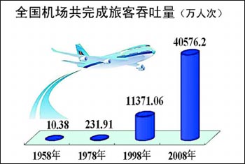 60年光陰荏苒,幾乎從零開(kāi)始的新中國(guó)民航業(yè)總規(guī)模已躍居為世界第二。 據(jù)統(tǒng)計(jì),到2005年,中國(guó)民航實(shí)現(xiàn)了運(yùn)輸總周轉(zhuǎn)量257.765億噸公里,位列國(guó)際民航組織所有締約國(guó)的第二名。至2008年,中國(guó)民航實(shí)現(xiàn)運(yùn)輸總周轉(zhuǎn)量376.8億噸公里,是1950年的24000倍,全行業(yè)擁有運(yùn)輸飛機(jī)1259架,機(jī)隊(duì)規(guī)模60年增長(zhǎng)200倍。開(kāi)通國(guó)內(nèi)航線(xiàn)1235條,國(guó)際航線(xiàn)開(kāi)通了至47個(gè)國(guó)家、108個(gè)城市的297條定期客貨航線(xiàn),首都國(guó)際機(jī)場(chǎng)已躋身世界機(jī)場(chǎng)第8位,成為世界繁忙的進(jìn)出港之一。 60年一個(gè)輪回,中國(guó)民航業(yè)又站在新的關(guān)口,面臨新的挑戰(zhàn)。