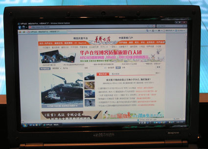 在韓國(guó)首爾三星公司多媒體中心瀏覽華聲在線首頁(yè)