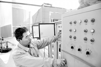 2009年12月16日,北京大興區(qū)長(zhǎng)子營(yíng)鎮(zhèn)留民營(yíng)村沼氣站的工作人員在操作控制柜。當(dāng)天,北京大興區(qū)長(zhǎng)子營(yíng)鎮(zhèn)留民營(yíng)沼氣站七村沼氣聯(lián)供工程正式開通。該工程是北京最大的農(nóng)村沼氣集中供氣工程,年處理畜禽糞便達(dá)12萬(wàn)噸,年產(chǎn)沼氣92萬(wàn)立方米,為當(dāng)?shù)仄叽?650戶、5900多名村民提供清潔、安全和廉價(jià)的管道燃?xì)。 新華社發(fā) |