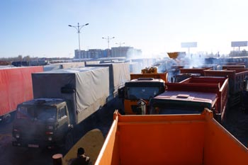 圖為新疆霍爾果斯口岸等待通關(guān)出口的汽車。刁甜甜