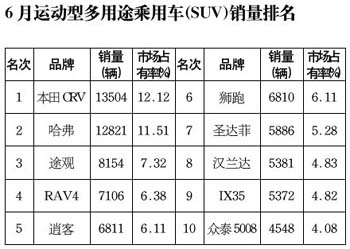 6月運動型多用途乘用車(SUV)銷售表現(xiàn)突出,銷售111397輛,環(huán)比增長8.06%,同比增長1.1倍,遠高出乘用車銷售平均水平。 其原因是SUV市場的產(chǎn)品格局已經(jīng)發(fā)生了很大變化,SUV市場的主體已經(jīng)完成了從低端經(jīng)濟型SUV向城市SUV的過渡。另外,二次購車者尤其青睞SUV車型。在購買SUV車型的消費者中,有80%左右是換車的人群。 從6月份的銷售情況來看,兩驅(qū)SUV:長城汽車、北京現(xiàn)代、湖南江南居前三位,單月銷量分別為10397、7819、7177輛。四驅(qū)SUV:東風(fēng)本田、一汽豐田、榮城華泰位居前三位,單月銷量分別為13504、8746、6175輛。 6月,銷量排名前10位的SUV品牌與上月相比,排名發(fā)生較大變化,僅有獅跑、圣達菲和眾泰5008排名保持不變,上月第二的本田CRV超過哈弗位居第一,途觀和逍客排名有所上升,RAV4、漢蘭達、IX35名次均有所下降。前10位中,環(huán)比增長有六款車型,其中逍客增長最快,為34.01%,途觀增長32.67%,本田CRV增長32.26%;下降的四款車型中,哈弗較上月下降最大,為15.79%,漢蘭達下降了12.97%。 |
