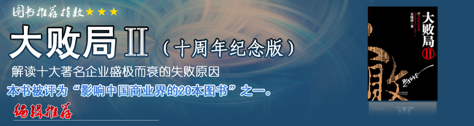 | 本書所記錄的敗局均發(fā)生在2000年到2007年之間,將它們與《大敗局》中的失敗案例合在一起來閱讀,你將可以看到過去10年里發(fā)生在中國商業(yè)界的眾多興衰往事。在任何一個商業(yè)社會中,成功永遠是偶然的和幸運的,而失敗則無所不在。商業(yè),就本質(zhì)而言,是一個關(guān)于幸存者的游戲;對企業(yè)家來說,失敗則是職業(yè)生涯的一部分。這是一件讓人遺憾、但不可恥的事情,失敗往往伴隨著偉大的創(chuàng)新和冒險。從某種意義上而言,正是燃燒在企業(yè)家內(nèi)心的那股不甘平庸的勃勃野心,在一次次地顛覆著陳舊的秩序,掀起并發(fā)動了商業(yè)上的巨浪與革命。 |