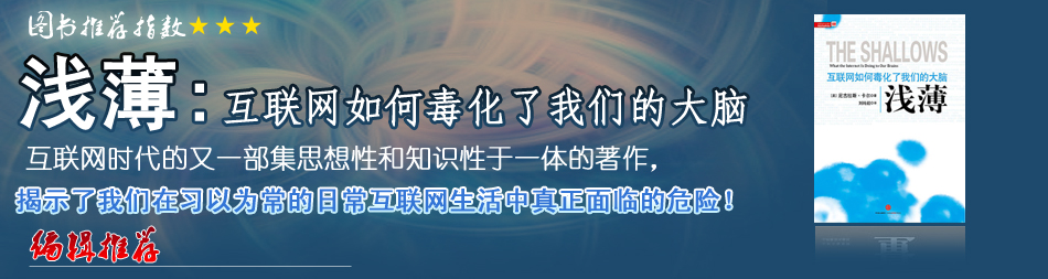 | 卡爾讓人心悅誠服地認識到,所有的信息技術(shù)都會帶來一種智能倫理。印刷圖書如何讓我們進入聚精會神的狀態(tài),從而促進深度思維和創(chuàng)造性思維的發(fā)展。相比之下,互聯(lián)網(wǎng)鼓勵我們蜻蜓點水般地從多種信息來源中廣泛采集碎片化的信息,其倫理規(guī)范就是工業(yè)主義,這是一套速度至上、效率至上的倫理,也是一套產(chǎn)量最大化、消費最大化的倫理——如此說來,互聯(lián)網(wǎng)正在按照自己的面目改造我們。我們變得對掃描和略讀越來越得心應(yīng)手,但是,我們正在喪失的卻是專注能力、沉思能力和反省能力。在《淺薄》一書中,有智能技術(shù)的發(fā)展歷史,有大眾科學(xué)的普及知識,有文化批判的真知灼見,全書處處閃耀著令人難忘的智慧之光,這些內(nèi)容恰似對我們現(xiàn)代人的心智狀態(tài)所做的全面而深遠的拷問。。 |