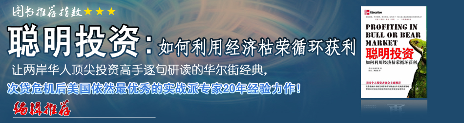 | 操盤投資前要識別經(jīng)濟(jì)大勢,如何確定經(jīng)濟(jì)熱冷,如何確定通脹通縮?在通脹或者通縮的時(shí)候,我們的投資股票放在什么行業(yè)會比較好點(diǎn):做生產(chǎn)的,做房產(chǎn)的,做消費(fèi)的,還是搞資源的?這些其實(shí)都跟經(jīng)濟(jì)的循環(huán)起伏很有關(guān)系的。要正確把握經(jīng)濟(jì)大勢,提高投資的預(yù)見性,把握物價(jià),房價(jià),外匯以及股價(jià)下一步的變化趨勢,《聰明投資:如何利用經(jīng)濟(jì)枯榮循環(huán)獲利》一書就給了我們一幅很好的投資四季地圖。 |