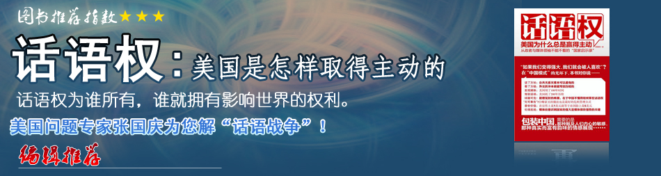| 收到一本新書,書名很醒目——《話語權(quán)》,作者張國(guó)慶是中國(guó)社科院美國(guó)研究所的國(guó)際問題專家!对捳Z權(quán)》這本書主要內(nèi)容說的是美國(guó)社會(huì)如何利用“話語權(quán)”來影響中國(guó)、誤導(dǎo)中國(guó)、鉗制中國(guó)、戰(zhàn)勝中國(guó)。很寬的書腰上赫然寫著這樣的文字:“在宣傳上花1美元就等于在國(guó)防上花5美元”。因此,“話語權(quán)”等于是一場(chǎng)長(zhǎng)期而復(fù)雜的“宣傳戰(zhàn)”。張國(guó)慶先生的這本書我還沒來得及看完,但是,他很清晰地提出了“話語權(quán)”這個(gè)非常重要的問題,他讓我們意識(shí)到,中國(guó)與美國(guó)之間的這場(chǎng)“話語權(quán)”較量,至少在目前看來,中國(guó)一直處于下風(fēng),近幾十年來,中國(guó)在這個(gè)問題上,始終不是美國(guó)的對(duì)手。有這樣一個(gè)意識(shí),我覺得是一個(gè)巨大的進(jìn)步…[詳細(xì)] |