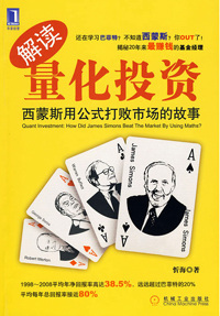 等這三個離開以后,川妹子又把金融投資書架仔細(xì)翻了一遍,關(guān)于這個“席夢思”(川妹子不知西蒙斯為何人,聽發(fā)音像是“席夢思”)的書,一本都沒有。這確實是一個很耐人尋味的現(xiàn)象,正如同樣身為圈內(nèi)人的忻海在自序中寫道:“雖說他的投資戰(zhàn)績遠(yuǎn)遠(yuǎn)好于索羅斯和巴菲特,但是知道他和他的基金的人卻不多,就連業(yè)內(nèi)人士也是如此!眰中緣由究竟是為什么呢?事實上,這等于為忻海創(chuàng)造了一個寫作的契機和動機——如他所說,《解讀量化投資》試圖通過介紹量化基金行業(yè)里綽號為“埃爾維斯”的詹姆斯·西蒙斯和他的復(fù)興技術(shù)公司以及大獎?wù)禄,透視這個行業(yè)的秘密和行業(yè)內(nèi)形形色色的人物……