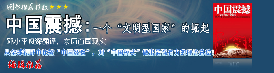 《中國震撼》之所以值得人們認(rèn)真閱讀,在于它引導(dǎo)人們?nèi)ニ伎,每一個文明國家、人類每一種獨立發(fā)展起來的文明,不僅走向現(xiàn)代的路徑不會相同,而且,現(xiàn)代性應(yīng)有的內(nèi)涵,也不可能相同。文明是歷史的產(chǎn)物,人也是歷史的產(chǎn)物。現(xiàn)代性也好,現(xiàn)代化路徑也好,歸根結(jié)底,都必須是文明國家自己的歷史性的選擇,都必須是文明國家最大多數(shù)人民自己的歷史性的選擇。 |