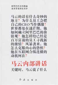 “為什么員工會(huì)把自己的CEO當(dāng)偶像”、“他怎樣給已經(jīng)是百萬富翁的員工尋找新的激情?”、“他在互聯(lián)網(wǎng)合縱連橫的動(dòng)機(jī)何在?”……紅旗出版社展位前,《馬云內(nèi)部講話》巨大海報(bào)上一連串橘黃色的問號(hào),讓不少經(jīng)過的人們放慢了腳步。 《馬云內(nèi)部講話》成熱門讀物。