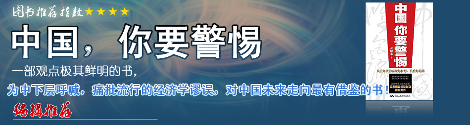 | 了解中國(guó)社會(huì)、理解社會(huì)現(xiàn)實(shí)、看清周邊環(huán)境、看清未來(lái)發(fā)展應(yīng)該看看這本書(shū)。不是完全贊同其中的某些觀點(diǎn),正如前面朋友有提到的過(guò)于主觀,但是畢竟代表了一部分人的看法,可供參考。 |