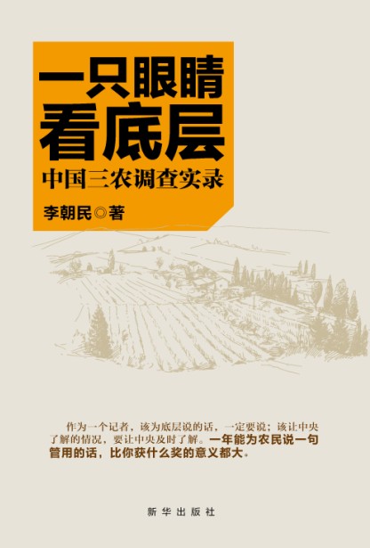 《一只眼睛看底層——中國三農(nóng)調(diào)查實(shí)錄》一書,近日將由新華出版社出版。該書作者為《農(nóng)民日報(bào)》記者李朝民。作者通過“聚焦農(nóng)業(yè)”、“田野驕子”、“底層脈動”、“微觀樣本”、“瞭望三農(nóng)”等5部分,對近年來我國“三農(nóng)”問題進(jìn)行了多側(cè)面的觀察與解讀。