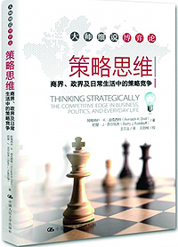 在《策略思維:商界、政界及日常生活中的策略競爭》這本書中,作者首先從10個來自生活不同方面同時也別有生趣的策略故事開始,提供了一些怎樣才能發(fā)揮最佳水準的初步概念,讓大家領(lǐng)略了指導(dǎo)策略決策的原理。然而,這僅是全書為數(shù)眾多的案例故事的一小部分,從囚徒困境到邊緣政策,從投票策略到討價還價,策略競爭真的隨處可見,競技體育里是如此,商業(yè)職場里是如此,在日常生活甚至于政治和思想領(lǐng)域也是如此。
