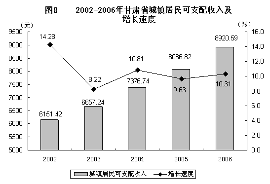 城鄉(xiāng)居民收入增加。全年城鎮(zhèn)居民人均可支配收入8920.59元,比上年增長10.31%,人均工薪收入為7008.40元,增長8.04%,人均轉(zhuǎn)移性收入為2142.35元,增長16.57%;城鎮(zhèn)居民家庭恩格爾系數(shù)為34.53%,比上年下降1.51個(gè)百分點(diǎn)。農(nóng)民人均純收入2134元,增長7.8%,人均外出務(wù)工收入為354.7元,增長14.7%,是農(nóng)民增收的主要因素;農(nóng)村居民家庭恩格爾系數(shù)為46.67%,下降0.53個(gè)百分點(diǎn)。年末農(nóng)村貧困人口139.41萬人,脫貧人口9.13萬人;年末農(nóng)村低收入人口316.57萬人,解決低收入人口38.75萬人。