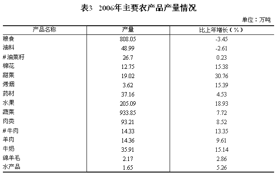農(nóng)業(yè)穩(wěn)定發(fā)展。糧食種植面積為259.88萬公頃,比上年增長0.45%,全年糧食總產(chǎn)量達(dá)到808.05萬噸,下降3.45%。其中:夏糧總產(chǎn)339.12萬噸,增長0.33%;秋糧總產(chǎn)468.93萬噸,下降6.0%。