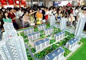 在近日開(kāi)幕的“2007沈陽(yáng)夏季房地產(chǎn)展示交易會(huì)”上,購(gòu)房者在沙盤前表情各異,房?jī)r(jià)仍是他們的最關(guān)注點(diǎn)。新華社發(fā)(張文魁