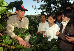 揚(yáng)帆工程走進(jìn)云南,旨在幫助全國(guó)大學(xué)畢業(yè)生成功就業(yè)?Х确N植專家鄔特(左一)在為云南農(nóng)業(yè)大學(xué)應(yīng)屆畢業(yè)生介紹小粒種咖啡種植技術(shù)。新華社記者:王呈選