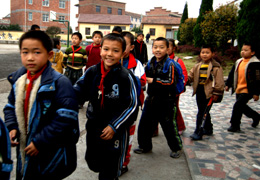 今年全國財政安排農(nóng)村義務(wù)教育經(jīng)費(fèi)2235億元,比去年增加395億元,以實現(xiàn)讓所有孩子都能上得起學(xué),都能上好學(xué)的目標(biāo)。 圖為浙江省衢州市姜家山鄉(xiāng)中心小學(xué)的學(xué)生正高高興興從教室出來。 本報記者:王小川