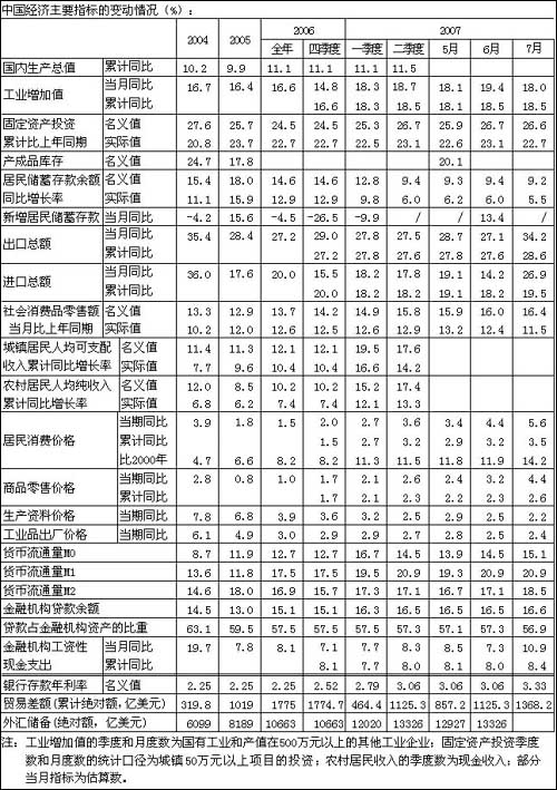 7月份,我國經(jīng)濟延續(xù)緩慢上升走勢,居民消費價格漲幅明顯增大,金融機構(gòu)企業(yè)存款加速增長,經(jīng)濟趨向過熱的風險增大。宏觀調(diào)控政策似應適當加大力度。
