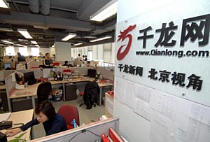 | 2000年2月成立的千龍網是國內第一家由國務院新聞辦公室批準成立的政府新聞網站。千龍網成立初期正值網絡媒體興起的時期,活躍在網絡媒體潮頭的千龍網創(chuàng)造了輝煌的戰(zhàn)績。新華社記者