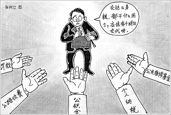我國的收費項目可以說是多得數(shù)不清,每年到底收了多少錢?這些錢都拿去干什么了?用掉了多少?還剩多少?確實應(yīng)該公開。財務(wù)不透明,腐敗就不可避免。百姓交了錢卻無權(quán)知道它們的去處,這合理嗎?
