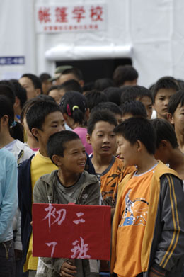 攝 | 9月8日,攀枝花地震重災(zāi)區(qū)元謀縣姜驛鄉(xiāng)15所中小學(xué)校全部開學(xué)。在姜驛中心小學(xué),740名四里八鄉(xiāng)的彝族、傈僳族孩子們,走進(jìn)了解放軍叔叔為他們新搭建的“帳篷學(xué)!保I(lǐng)到了部隊(duì)贈送的各種文具及生活用品。 四川攀枝花地震中,距震中僅17公里的姜驛鄉(xiāng)受災(zāi)嚴(yán)重,全鄉(xiāng)學(xué)校不同程度受損,當(dāng)?shù)卣疀Q定推遲至9月8日開學(xué)。駐滇某師高炮團(tuán)完成搶救群眾生命財(cái)產(chǎn)的任務(wù)后,于9月3日緊急投入到援建受災(zāi)學(xué)校的戰(zhàn)斗中。5天來,這個團(tuán)為確保受災(zāi)學(xué)校如期開學(xué)而突擊,累計(jì)出動官兵1600余人次,從危房中搶救出價(jià)值20余萬元的課桌、教材等,平整場地5000余平方米,搭建活動板房18間、帳篷248頂,贈送了價(jià)值4.5萬余元的教學(xué)物資和學(xué)習(xí)生活用品。 7日晚,最后一批鐵床材料和組裝課桌緊急運(yùn)抵姜驛后,團(tuán)長蘇小林和二營官兵通宵作業(yè),緊急焊裝組合鐵床159鋪、課桌700張,一直忙碌到天亮,沒有誤了學(xué)生如期開學(xué)上課。 在整潔有序的學(xué)生住宿帳篷區(qū),來自阿拉益村的姜驛中學(xué)初一學(xué)生杞金麗找到了貼有自己姓名的床鋪。她開心地看到,散發(fā)著新棉絮香味的被子鋪好了,床下整齊地?cái)[放著拖鞋、臉盆和洗漱用具。當(dāng)她沿著床梯往上鋪爬時(shí),發(fā)現(xiàn)連鐵床轉(zhuǎn)角焊接的鋒利處,都被解放軍叔叔細(xì)心地纏上了布墊。“解放軍叔叔為我們想得太周到了!”杞金麗感動地說。 上午,帳篷里傳出瑯瑯讀書聲,但官兵們并沒有休息,五連排長吳榮春正帶著戰(zhàn)士們在剛剛開辟的學(xué)校臨時(shí)食堂附近,用砍刀清除著兩側(cè)的荊棘……