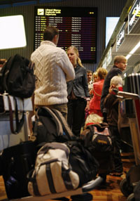 10月19日,在芬蘭的赫爾辛基-萬塔機場,乘客等候更換班機。芬蘭航空公司空乘人員當(dāng)?shù)貢r間19日清晨4時起舉行罷工,造成芬航飛往亞洲和美國的遠程航班全部停飛,客運幾乎處于癱瘓狀態(tài)。