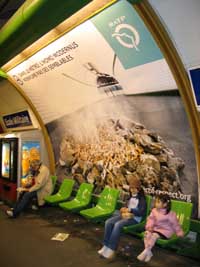 煙草中毒是危害公眾健康的主要?dú)⑹。法國政府采取了種種禁煙措施,希望還民眾一個(gè)沒有香煙污染的公共空間。這張?jiān)诜▏罔F宣傳海報(bào)上寫著:在地鐵里,現(xiàn)代人不會煙熏同類。