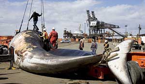 冰島于10月宣布恢復(fù)商業(yè)捕鯨活動(dòng)。自那以后冰島已捕殺了五頭長(zhǎng)須鯨,根據(jù)其“配額”,今年還可以再捕殺四頭。 |