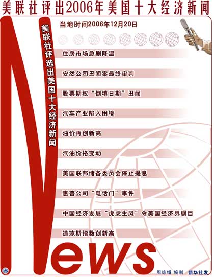 美聯(lián)社20日評選出今年美國十大經(jīng)濟新聞。其中,美國房地產(chǎn)市場急劇降溫名列榜首,安然公司財務丑聞的最終裁決位居第二。