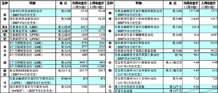 受油價反彈影響,當周貴金屬及基本金屬價格全線上揚。26日,黃金期貨價格漲至每盎司645.5美元,為六個月以來最高。對此分析人士指出,出于保值考慮,黃金需求將進一步擴大,這無形中將會加大通貨膨脹的危險。基本金屬中,除鋅價有所回落外,鎳、錫、銅、鋁和鉛的價格均有不同幅度上漲,其中鎳價和錫價繼續(xù)創(chuàng)下新高。