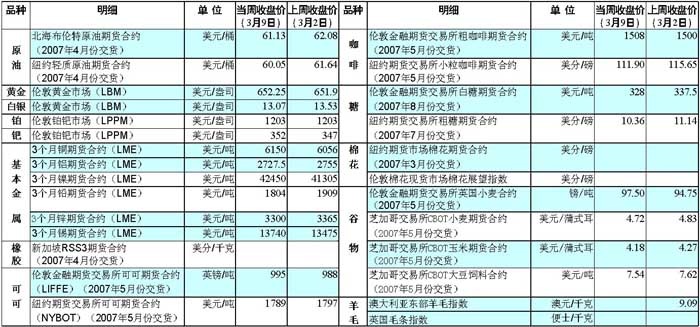 國際大宗商品期貨價(jià)格明細(xì)表[圖]
