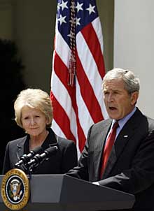 14日,美國(guó)總統(tǒng)布什(右)在華盛頓白宮發(fā)表講話,提出旨在減少美國(guó)對(duì)“不安定地區(qū)”石油供給的依賴程度,加強(qiáng)美國(guó)防務(wù)力量防止恐怖襲擊的計(jì)劃。 新華社/路透