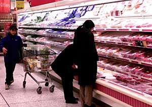 顧客在一家英國(guó)超市選購(gòu)食品。本報(bào)資料照片 | 為有效減少溫室氣體排放量、保護(hù)環(huán)境,英國(guó)政府計(jì)劃將商品在生產(chǎn)、運(yùn)輸和消費(fèi)過(guò)程中的溫室氣體排放量計(jì)算成數(shù)字,并制作成標(biāo)簽貼在包裝上。今后,消費(fèi)者可以憑借這一數(shù)字,選擇物美價(jià)廉的環(huán)保商品。