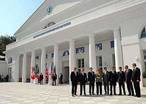 | 7日,在德國(guó)小鎮(zhèn)海利根達(dá)姆,出席八國(guó)集團(tuán)首腦會(huì)議的八國(guó)領(lǐng)導(dǎo)人和歐盟委員會(huì)主席巴羅佐(右七)在會(huì)議期間合影。新華社/法新 | 八國(guó)集團(tuán)(G8)首腦會(huì)議6日以非正式晚宴的形式在德國(guó)海濱小鎮(zhèn)海利根達(dá)姆拉開帷幕,與會(huì)領(lǐng)導(dǎo)人在接下來(lái)兩天的會(huì)晤中將撥動(dòng)全球經(jīng)濟(jì)的“琴弦”。 八國(guó)集團(tuán)峰會(huì)的前身七國(guó)集團(tuán)峰會(huì)曾被視為西方發(fā)達(dá)國(guó)家最高級(jí)別的經(jīng)濟(jì)會(huì)議。雖然八國(guó)集團(tuán)峰會(huì)的議題拓展到了政治和安全領(lǐng)域,但經(jīng)濟(jì)仍是其重要話題。八國(guó)集團(tuán)輪值主席國(guó)德國(guó)將今年峰會(huì)的主題確定為“增長(zhǎng)與責(zé)任”,希望借此彰顯八國(guó)集團(tuán)峰會(huì)的經(jīng)濟(jì)本色。 八國(guó)集團(tuán)領(lǐng)導(dǎo)人在7日舉行的首場(chǎng)會(huì)議中就全球經(jīng)濟(jì)形勢(shì)展開討論,并展望全球經(jīng)濟(jì)發(fā)展前景。按照會(huì)議議程,八國(guó)領(lǐng)導(dǎo)人和部分發(fā)展中國(guó)家的領(lǐng)導(dǎo)人還將討論全球氣候變化、非洲發(fā)展、對(duì)沖基金、知識(shí)產(chǎn)權(quán)保護(hù)和世界貿(mào)易組織多哈回合談判等問(wèn)題。 得益于德國(guó)的積極推動(dòng),如何為全球氣候“降溫”成為今年峰會(huì)上最炙手可熱的話題。德國(guó)希望其他工業(yè)大國(guó)能夠共同承諾,到2050年實(shí)現(xiàn)全球溫室氣體排放比1990年的排放水平降低50%,全球平均氣溫上升不超過(guò)兩攝氏度。 八國(guó)集團(tuán)峰會(huì)東道國(guó)德國(guó)總理默克爾7日下午宣布,經(jīng)過(guò)艱苦談判,八國(guó)集團(tuán)各方已同意“認(rèn)真考慮”德國(guó)提出的關(guān)于到2050年全球溫室氣體排放量比1990年降低50%的建議。 此外,各方還同意,在聯(lián)合國(guó)框架內(nèi)進(jìn)行有關(guān)談判是解決氣候變化問(wèn)題的合適途徑。默克爾認(rèn)為,這是目前各方能夠達(dá)成的最佳妥協(xié)方案,是應(yīng)對(duì)氣候變化努力的“一個(gè)真正的轉(zhuǎn)折點(diǎn)”。她還說(shuō),這一妥協(xié)向今年年底將在印尼巴厘島舉行的聯(lián)合國(guó)氣候大會(huì)傳遞了一個(gè)強(qiáng)烈的信號(hào)。 幫助非洲大陸擺脫貧困是八國(guó)集團(tuán)峰會(huì)近年來(lái)的另一熱門話題。德國(guó)總理默克爾今年曾強(qiáng)調(diào),八國(guó)集團(tuán)不僅要向非洲提供援助,而且要與非洲國(guó)家建立伙伴關(guān)系,通過(guò)推行“良政”和發(fā)展當(dāng)?shù)亟鹑跇I(yè)來(lái)促進(jìn)非洲自身經(jīng)濟(jì)發(fā)展。但分析人士指出,德國(guó)的“新方式”無(wú)異于“新瓶裝舊酒”,反而會(huì)淡化發(fā)達(dá)國(guó)家向窮國(guó)提供資金和技術(shù)轉(zhuǎn)讓等方面的責(zé)任。 近來(lái)在全球范圍內(nèi)對(duì)沖基金規(guī)模日益壯大,由此帶來(lái)的風(fēng)險(xiǎn)也越來(lái)越大,引起了各國(guó)的警惕。東道國(guó)德國(guó)和其他一些歐盟國(guó)家將在本次峰會(huì)上尋求加強(qiáng)對(duì)對(duì)沖基金的監(jiān)管,但由于美國(guó)持反對(duì)態(tài)度,這一議題恐怕同樣難以取得進(jìn)展。 此外,為陷入僵局的多哈回合談判重新注入活力也是八國(guó)集團(tuán)峰會(huì)討論的熱點(diǎn)。此次會(huì)議上,影響多哈回合進(jìn)程的世貿(mào)組織重要成員基本到齊,他們能否打破僵局找到出路,前景并不樂觀。