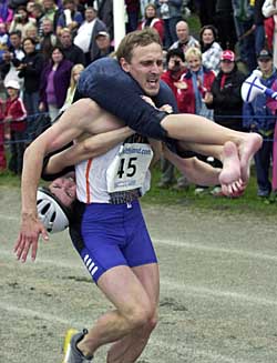 新華社/路透 | 地廣人稀的芬蘭夏季短促。為使人們聚集在一起度過快樂時光,從1992年起,芬蘭小鎮(zhèn)松卡耶爾維開始舉辦“背老婆”比賽。今年的比賽于本月7日舉行,愛沙尼亞選手奪得冠軍。 今年是第12屆“背老婆”比賽,共有來自12個國家的44對夫婦報名參賽。在往屆比賽中,愛沙尼亞選手一向優(yōu)勢明顯,今年他們再次包攬了比賽的前兩名,馬迪斯·烏索格與妻子因加·克勞松以61.7秒的成績最先跑到終點,他們的獎品是一臺等離子電視機,以及與冠軍妻子體重相等的49公斤啤酒。 顧名思義,“背老婆”比賽的方法即是丈夫背著老婆或女伴賽跑,賽程共250米,選手在奔跑中要跨越一個水池和一些圍欄障礙物。最令人大開眼界的是,雖然背“老婆”的方式?jīng)]有固定要求,但是很多人采用了一種奇怪的標(biāo)志性“愛沙尼亞式背法”,即女伴一路頭朝下用雙腿掛住男選手的脖子。這種背法雖然不夠雅觀,但效果甚佳。 今年的冠軍丈夫馬迪斯·烏索格是上屆比賽冠軍馬戈·烏索格的兄弟,馬迪斯賽后對路透社記者說:“贏得比賽我非常興奮,這是我第五次參賽,第二次奪冠,而且是第一次戰(zhàn)勝我的兄弟! “這個比賽聽起來很荒唐,”來自美國俄亥俄州的蘇珊·拉佛蒂和丈夫一起參加了今年的比賽,并獲得第33名!暗撬某霈F(xiàn)有很多歷史淵源呢! 活動主辦方主席韋科·泰爾沃寧介紹說,“背老婆”的傳統(tǒng)可以追溯到200多年前,當(dāng)時,有一個名叫羅斯沃-龍凱寧的強盜頭目,為挑選最強壯的手下,他讓申請者背著重物穿越森林,速度最快的人才有資格入選。 “傳說這些強盜在洗劫村落時還會擄走婦女,”泰爾沃寧接著打趣說,“還聽說女人們很樂意被搶走! 十幾年前,一些芬蘭人希望通過紀(jì)念這些古老的傳說保留本國傳統(tǒng)文化,于是從1992年開始,“背老婆”比賽重現(xiàn)江湖。 為推廣此項賽事,芬蘭主辦方還專門設(shè)立網(wǎng)站,輔導(dǎo)人們?nèi)绾翁岣摺氨忱掀拧奔寄。比賽很快傳播開來,并獲得世界上其他地區(qū)人們的喜愛。 依據(jù)比賽規(guī)則,“老婆”除了真正的妻子,也可以是做搭檔的其他女伴,但不管是誰,她們的體重必須在48.5公斤以上,否則女選手還需另背一個沙包補齊重量。如果在奔跑過程中女伴摔到地上,那么這組選手的成績將被加上15秒。然而,比賽規(guī)則中最重要的,也是惟一標(biāo)成粗體的一條是“所有參賽者要玩得開心”。 美國參賽者蘇珊和丈夫詹姆斯說:“我們來這里的目的就是為了開心,現(xiàn)在不僅我們非?鞓罚覀兊暮⒆雍驮趫龅乃腥硕挤浅8吲d。” 據(jù)統(tǒng)計,每年有一萬多游客因“背老婆”比賽來到松卡耶爾維小鎮(zhèn),遠(yuǎn)遠(yuǎn)超過小鎮(zhèn)人口。 “你可以在這里感受到世界上最美好的時光,”泰爾沃寧說,“當(dāng)全世界被暴力新聞充斥的時候,我們希望在這里營造一個歡樂之都! |