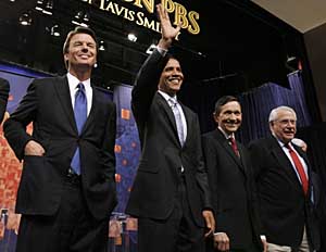 與選民接觸,籌集資金,是競(jìng)選期間總統(tǒng)候選人的主要任務(wù)。在美國(guó),有人稱“金錢是政治的乳汁”,而總統(tǒng)競(jìng)選更是一項(xiàng)“花錢如流水”的政治活動(dòng),建立與維持競(jìng)選班子,印發(fā)競(jìng)選材料,組織競(jìng)選集會(huì),參加電視辯論以及投放廣告等等,都離不開(kāi)一個(gè)“錢”字?梢哉f(shuō),能否籌到足夠的經(jīng)費(fèi)是對(duì)候選人的一個(gè)嚴(yán)峻考驗(yàn),直接關(guān)系到其能否維持自己的競(jìng)選。 總統(tǒng)候選人籌款一般來(lái)自公民個(gè)人、各級(jí)政黨委員會(huì)、其他政治行動(dòng)委員會(huì)以及為候選人舉行的籌款集會(huì)等。在這些籌款方式中,最重要的是個(gè)人捐款和集會(huì)籌款,總統(tǒng)候選人競(jìng)選資金的絕大部分來(lái)自于這兩種方式。 當(dāng)然,除了籌款之外,在爭(zhēng)奪美國(guó)第44任總統(tǒng)寶座的競(jìng)選人中,千萬(wàn)富翁大有人在。據(jù)美國(guó)廣播公司報(bào)道,在共和黨競(jìng)選中,前紐約市長(zhǎng)魯?shù)婪颉ぶ炖麃喣崛ツ陜H靠演講就獲得1100萬(wàn)美元收入。 律師出身的原民主黨參議員約翰·愛(ài)德華茲擁有約6200萬(wàn)美元的資產(chǎn),生活方式也極盡奢華。愛(ài)德華茲理一次發(fā)花費(fèi)400美元。?怂剐侣勁_(tái)主播布里特·休姆則對(duì)愛(ài)德華茲價(jià)值420萬(wàn)美元的豪宅調(diào)侃說(shuō):“耶穌該拿約翰·愛(ài)德華茲的豪宅怎么辦?” 但這些富翁競(jìng)選人跟共和黨競(jìng)選人米特·羅姆尼比起來(lái)都是“小巫見(jiàn)大巫”。原任馬薩諸塞州州長(zhǎng)的羅姆尼擁有一家私人產(chǎn)權(quán)公司,他的個(gè)人資產(chǎn)在1.9億到2.5億美元之間。 在幾名重量級(jí)競(jìng)選人中形象“最平民”的是民主黨人貝拉克·奧巴馬,他去年的收入也超過(guò)了100萬(wàn)美元! 美國(guó)的競(jìng)選政治說(shuō)到底,離不開(kāi)一個(gè)“錢”字,籌款能力更是總統(tǒng)競(jìng)選成敗的關(guān)鍵因素。不管是希拉里、奧巴馬,還是朱利亞尼、羅姆尼,他們都必須先籌到足夠多的錢,才有可能堅(jiān)持到投票的那一刻,否則,只能在激烈競(jìng)爭(zhēng)中被淘汰出局。 |